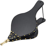 - Compact & efficient: Compact fire bellows with dimension of 17 x 7.5inch (L x W), made of beautiful black color finish, zinc-cast nozzle, crafted from thick ply board and black artificial leather look with rivets. 12.8inch long hanging strap design keeps a wider opening for large blowing capacity and round tip design get the fire roaring very quickly more substantially. Perfect handheld sized for BBQ barbecue tool kit and small enough to hang next to the fireplace, chimney and wood stove.